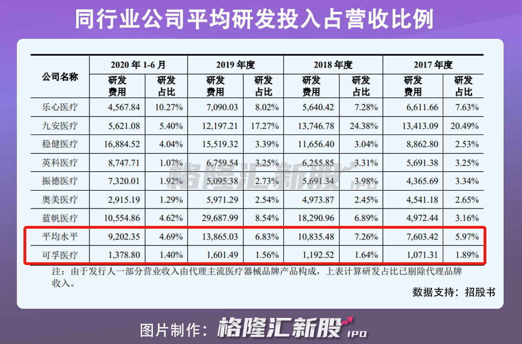 此外,可孚医疗在员工结构上也体现了重销售轻研发的问题。招股书显示,截至2020年6月30日,可孚医疗销售人员占比超过六成,而研发人员却不足5%。这意味着公司未来发展极有可能因研发费用、研发人员不足导致产品研发不足风险,且研发产品也存在单一隐患。而一旦遇到国家政策调整、产品技术更新替代的变化,可孚医疗的业绩将出现波动。