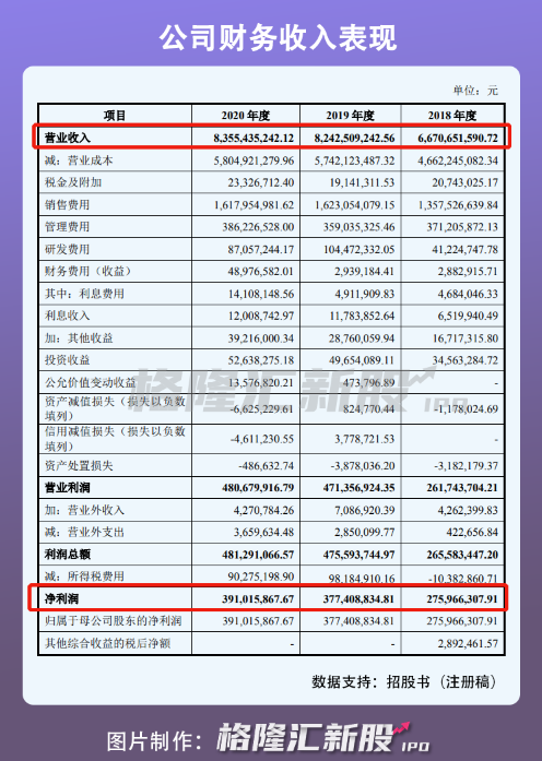 得益于上述经营策略,报告期内,公司营收保持了稳健增长,从2018年的66.71亿元增加至2020年的83.56亿元;同时,净利润也呈现持续增长趋势,从2018年的2.76亿元增加至2020年的3.91亿元。