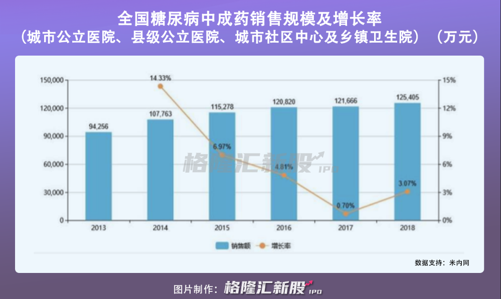 以收入占比最大的降糖类中成药来说,近年来,中国城市公立医院、县级公立医院、城市社区中心及乡镇卫生院终端糖尿病中成药的市场规模几无增长,维持在12亿元左右。公司降糖类产品为参芪降糖片,收入由2018年的6166万元仅增长至2020年的8118万元,占比约24%。可以看到,在趋于饱和的市场空间里,公司药品收入增量也是有限的。
