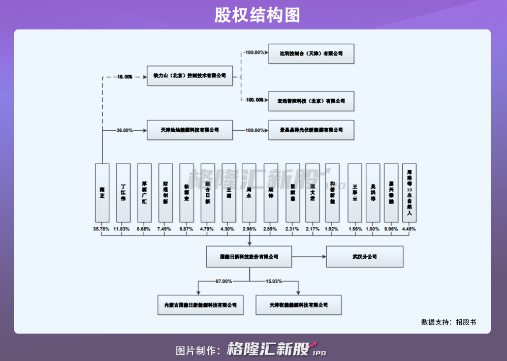 根据招股书,国能日新的控股股东、实际控制人为雍正,其直接持有本公司 19,022,205 股股份,占公司发行前股本总数的 35.78%。