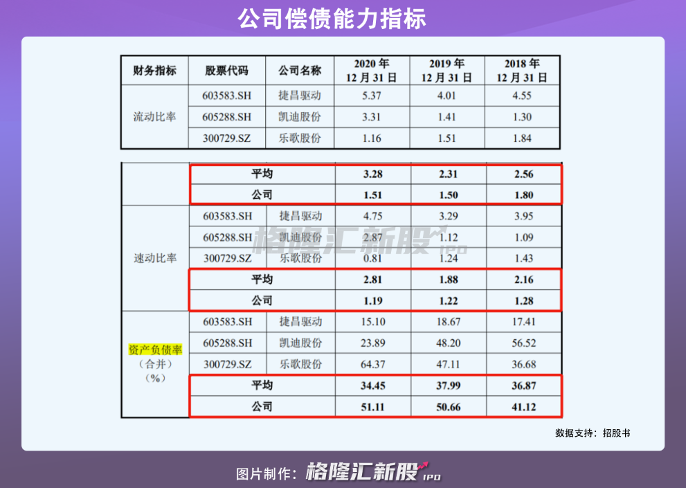 此外,随着豪江智能业务规模的扩张,公司资产负债率连年升高,2018年至2020年分别为41.12%、50.66%、51.11%。而同行业平均值最高不超过40%,豪江智能资产负债率高于同行。