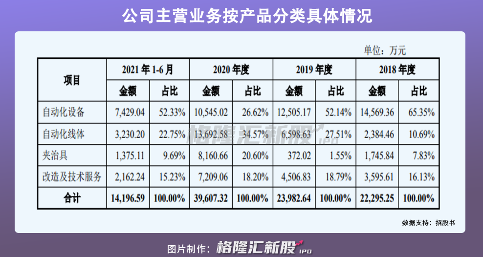 从产品来看,报告期内,自动化设备(包括精密检测设备和精密组装设备)、自动化线体和夹治具是公司的主导产品。其中,自动化设备系公司传统优势且较为成熟的产品,最近三年收入规模和占比均呈下降趋势,主要是因为自动化设备单机技术日趋成熟,市场竞争加剧所致。