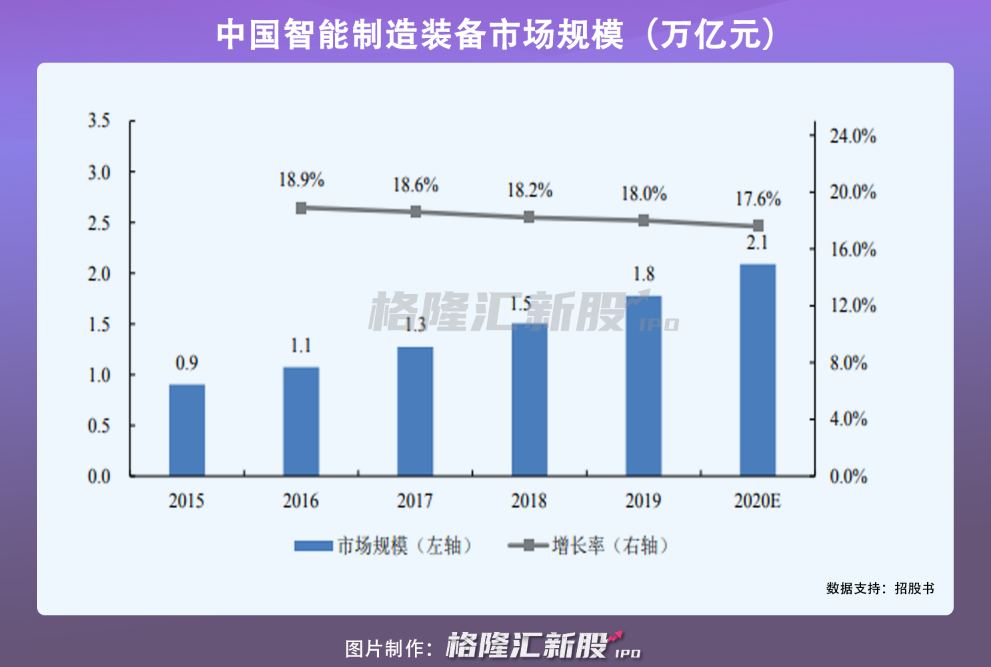 尤其是随着“中国制造 2025”战略的提出,制造装备智能化和自动化成为目前制造业发展的主要方向,未来将全面迎来发展的机遇。公开数据显示,2020年我国智能制造装备行业市场规模超过2万亿元,2015年至2020年市场规模增长率约 18%。