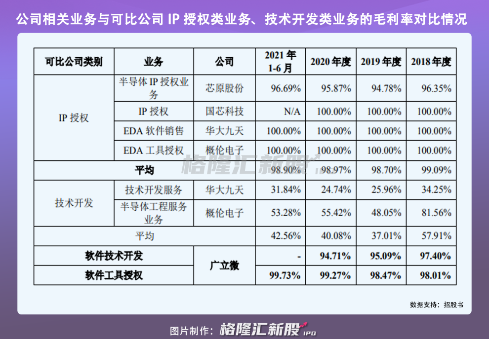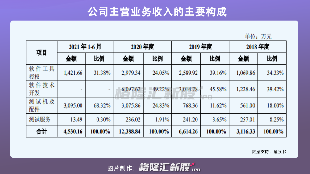此外,广立微的综合毛利率分别为 91.62%、92.02%、85.25%、 70.46%,存在一定的波动。例如,2020 年度,公司毛利率相较前一年度有所下降,主要原因系随着公司推出的第四代晶圆级电性测试设备获得市场认可,与 EDA 软件业务相比毛利率较低的测试机与配件业务高速发展,当年收入达 3075.86 万元,同比增长300.31%,因此公司综合毛利率有所降低。
