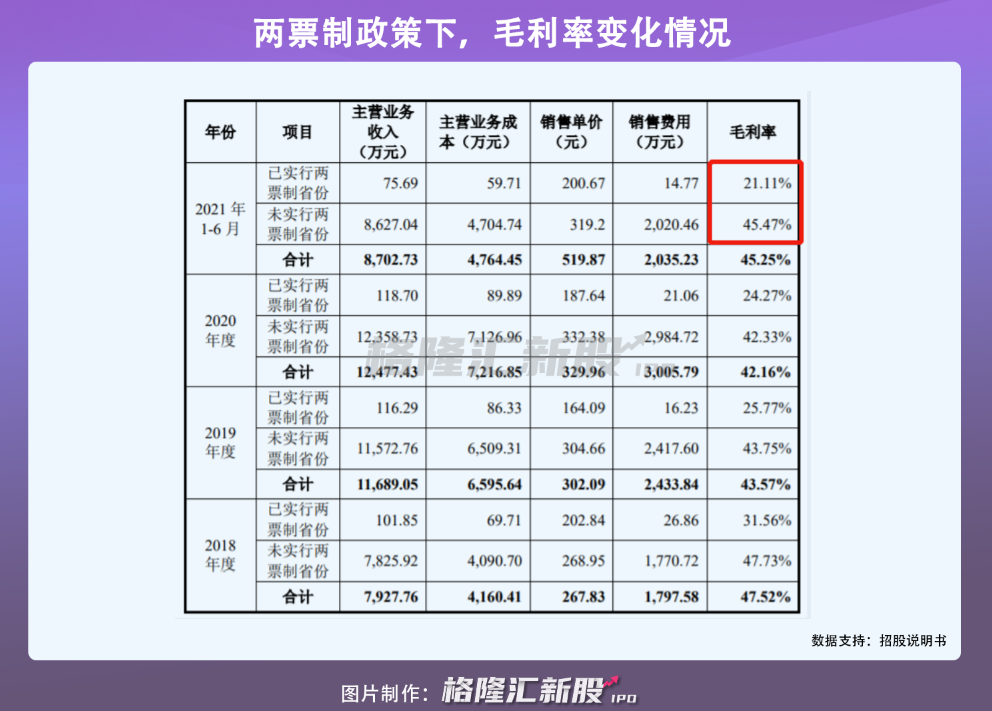 值得注意的是,“两票制”已是大势所趋,而在此背景下,公司在实行两票制省份的毛利率仅有未实行两票制省份的一半,且逐年下滑,尽管目前公司在已实行两票制省份的收入占比较小,但不排除随着两票制逐步实施,届时对公司毛利率将造成严重冲击。