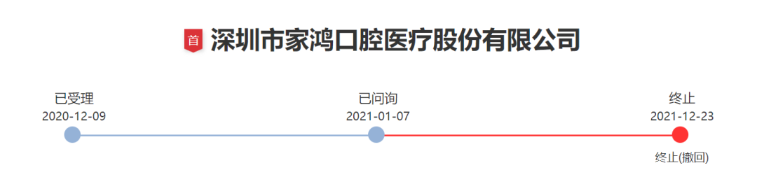 据格隆汇新股了解,深圳市家鸿口腔医疗股份有限公司(以下简称“家鸿口腔”)原计划将于本周五(12月24日)在深交所创业板首发上会,国信证券为其保荐机构。但不料的是,公司上会前日撤回相关材料,以致深交所终止其上会审核。