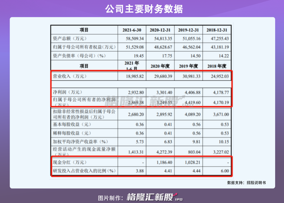 2018年-2020年,公司经营业绩呈现波动态势,实现营收分别为2.50亿元、3.10亿元、2.97亿元;对应的归母净利润分别为4170万元、4420万元、3250万元。