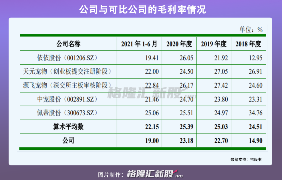 较高的原材料成本也导致宠物用品企业的毛利率水平整体偏低,报告期内,宠物用品企业的毛利率平均水平在22%-25%左右,其中中恒宠物的毛利率相对更低,分别为14.9%、22.7%、23.18%和19%,不及同行业水平,而宠物食品企业的毛利率大致在30%左右,普遍高于宠物用品企业。
