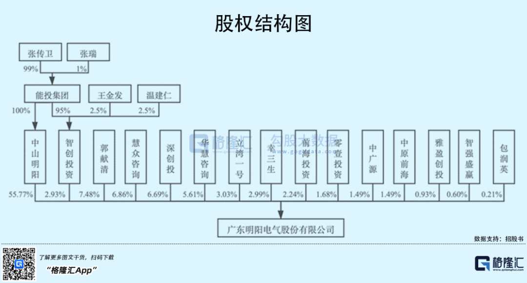 截至发行前,明阳电气的控股股东为中山明阳,其直接持有公司55.77%股份,公司的实际控制人为张传卫,其通过中山明阳、智创投资合计控制公司58.70%股份的表决权。