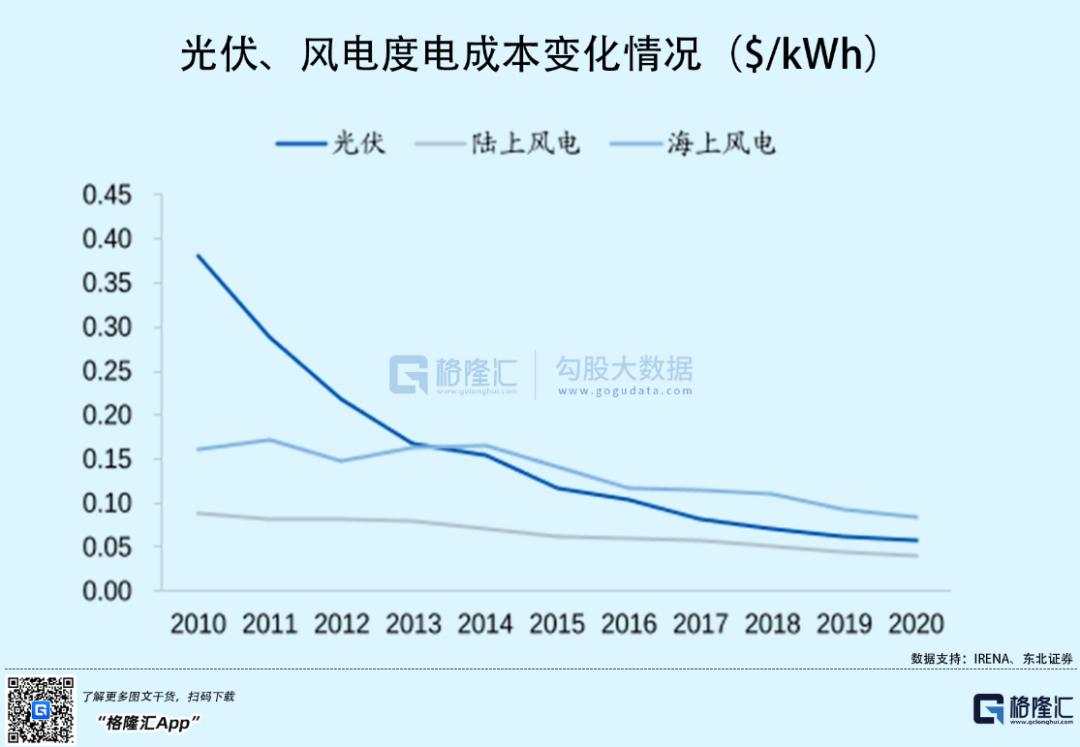 其中,海上风电凭借其距离用电负荷近、发电稳定、不占用陆地土地资源等优势迅速扩容,2021年装机量爆发,新增装机16.9GW,累计装机26.39GW。