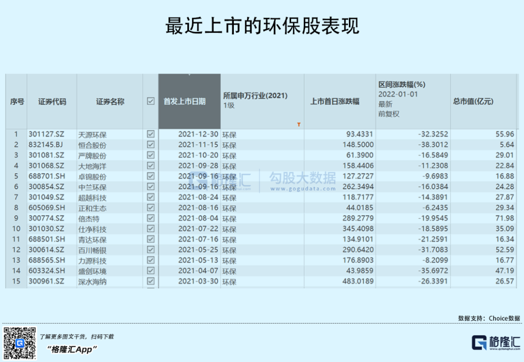 印象中,A股好一阵子没有环保股上市了。根据申万一级行业分类,目前A股共有115只环保股,最近一次上市的就属天源环保(301127.SZ),于2021年12月30日登陆创业板。
