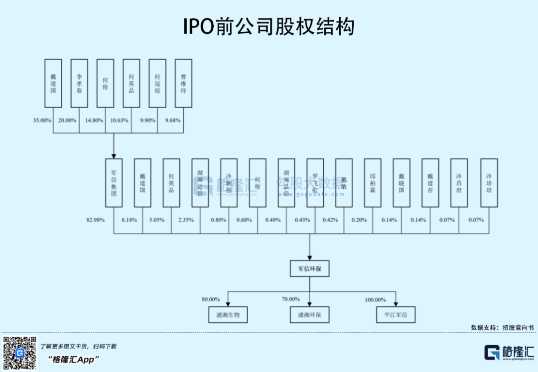 IPO前,军信集团持股占比82.98%,为公司控股股东;戴道国通过军信集团控股公司82.98%股份的表决权,加上其直接持有及间接的方式合计控制军信股份91.51%股份的表决权,为公司的实际控制人。