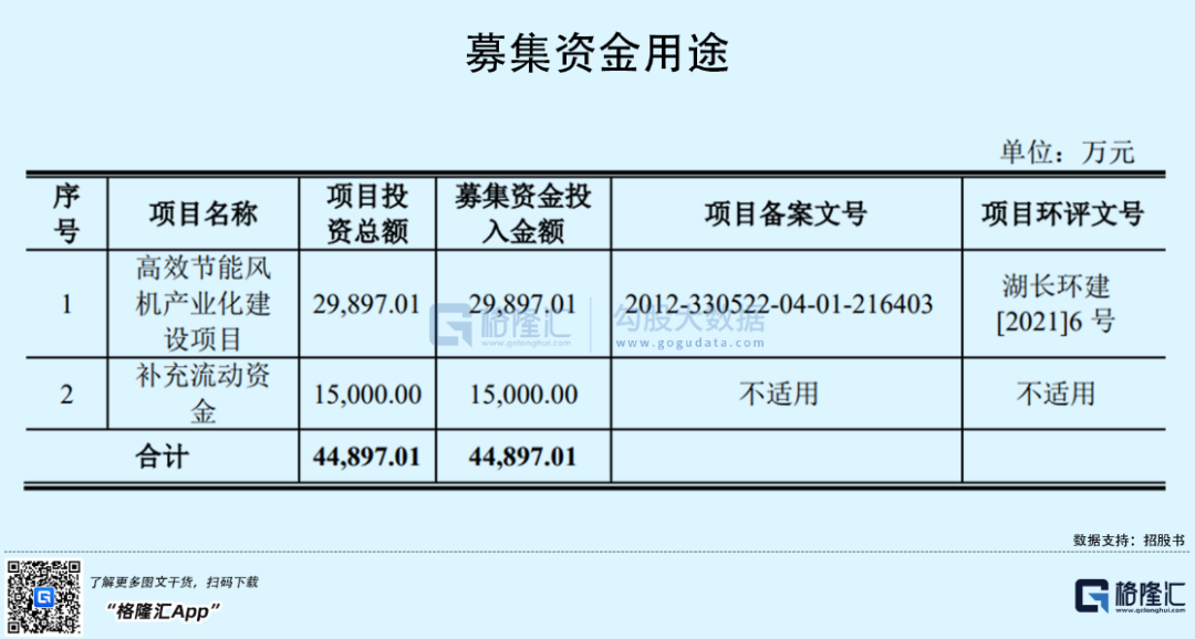 瑞晨环保本次拟募集资金4.49亿元,其中,2.99亿元拟用于高效节能风机产业化建设项目、1.50亿元拟用于补充流动资金。