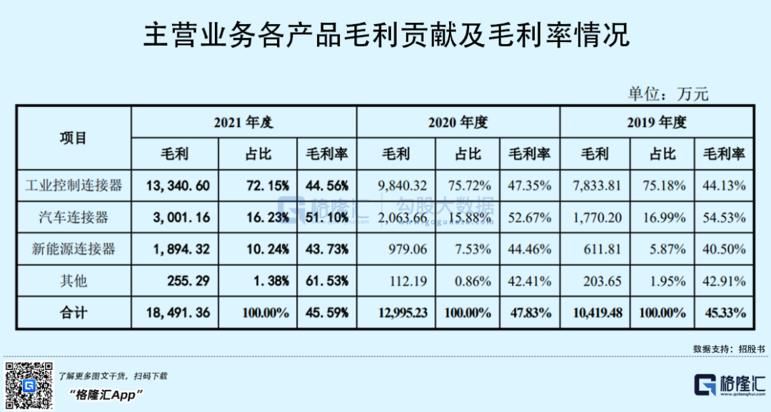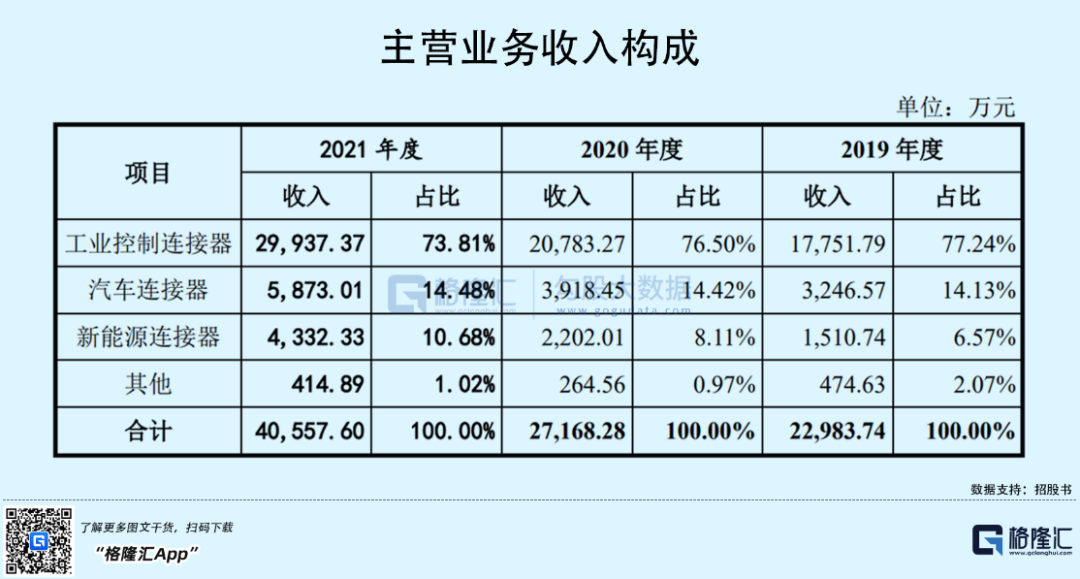 从营收的产品分类构成看,报告期各期工业控制连接器产品的销售收入占比均在70%以上,是公司营收的主要构成部分。
