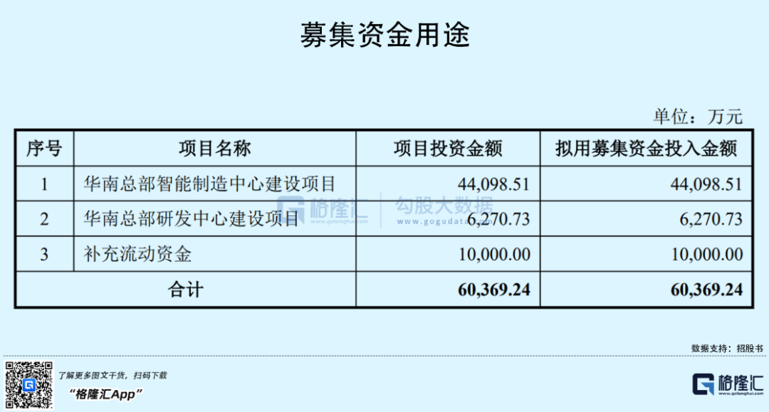 公司本次拟募资约6亿元,用于华南总部智能制造中心建设项目、华南总部研发中心建设项目以及补充流动资金。