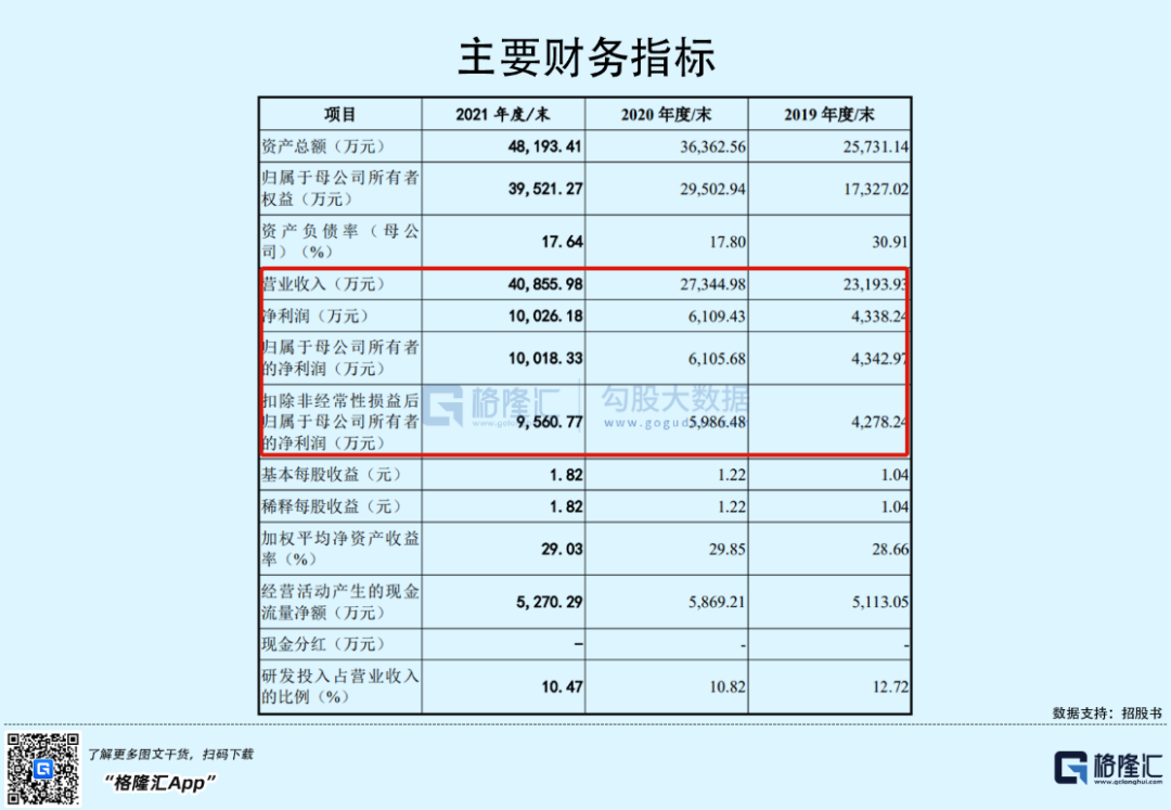 业绩方面,2019年至2021年各报告期,维峰电子分别实现营收2.32亿元、2.73亿元和4.09亿元,归母净利润分别为4342.97万元、6105.68万元和1.0亿元,公司的营收和净利润均呈现上升态势。