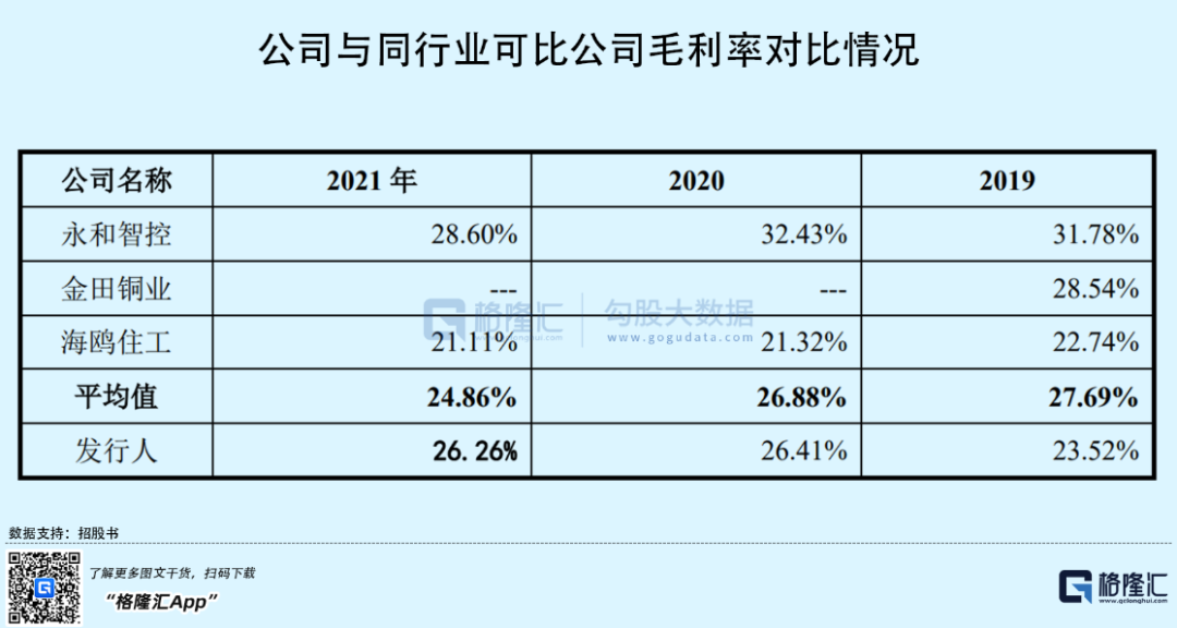 报告期内,万得凯的主营业务毛利率分别为23.52%、26.41%和26.26%,其中2021年高于同行业可比上市公司平均毛利率水平。