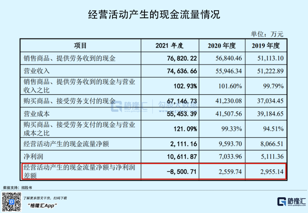 但值得注意的是,2021年万得凯的经营活动产生的现金流量净额为2111.16万元,远低于其净利润金额。主要是由于2021年公司对铜棒的采购额同比增长了173.20%,配件采购额同比增长167.51%,这使得2021 年采购支出大幅增加,公司在手订单规模达1.84亿元。