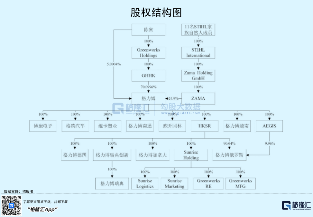 根据招股书,GHHK 持有公司 70.0996%股权,为公司控股股东;公司实际控制人陈寅先生直接持有公司 5.0004%股权,通过 GreenworksHoldings 和 GHHK 间接控制公司 70.0996%股权,合计控制公司 75.10%股权。不过,截至招股说明书签署日,Greenworks Holdings、GHHK、陈寅存在大额外部债务情况,如果相关债务未如期偿还并引发了债务纠纷,可能对公司的股权稳定性产生不利影响。