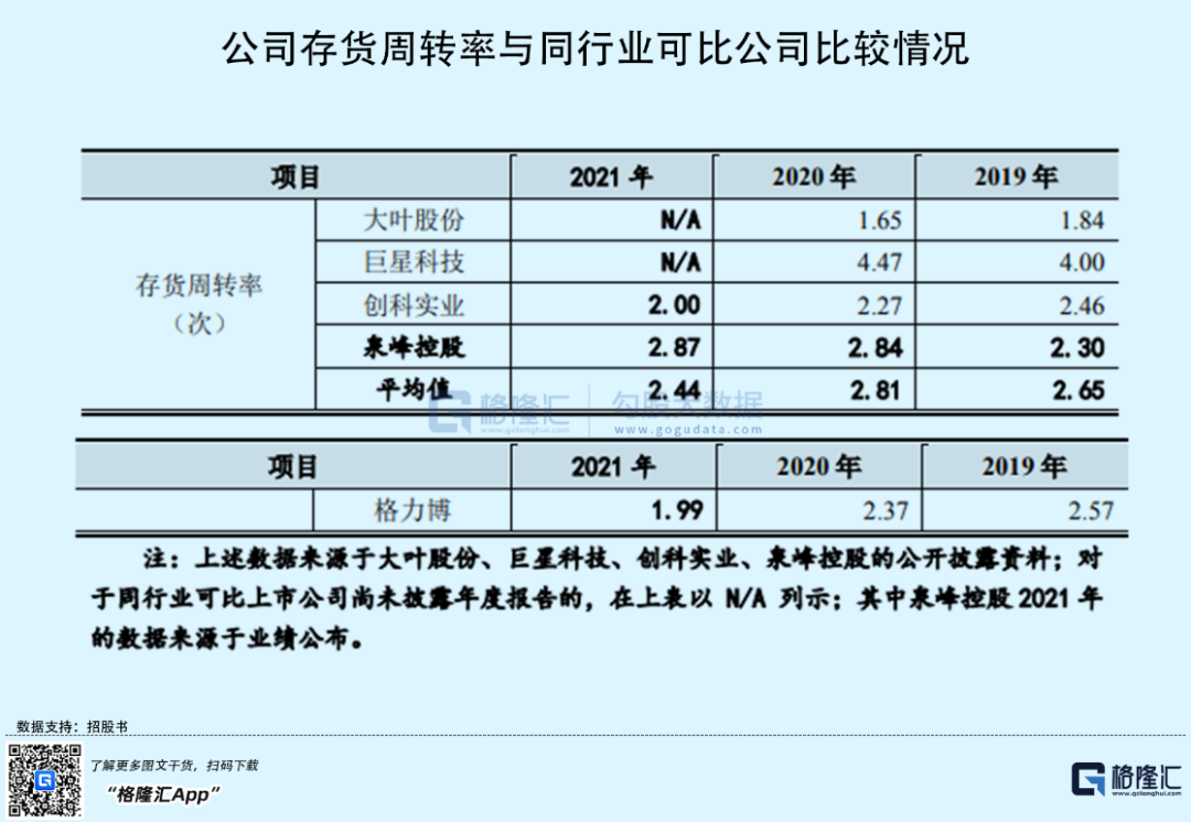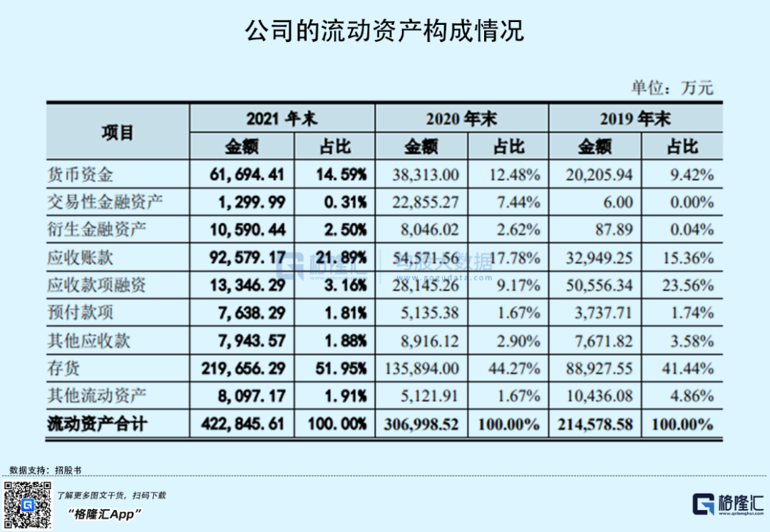与此同时,报告期各期末,公司存货账面价值分别为 8.89亿元、13.59亿元、21.97亿元,占流动资产的比例分别为 41.44%、44.27%和 51.95%,存货周转率逐年走低,且低于同行的均值,具体来看,公司存货中主要以库存商品为主,平均占比超过 60%,若产品销售未及市场预测,可能导致库存商品滞销、原材料积压等风险,进而影响经营发展。