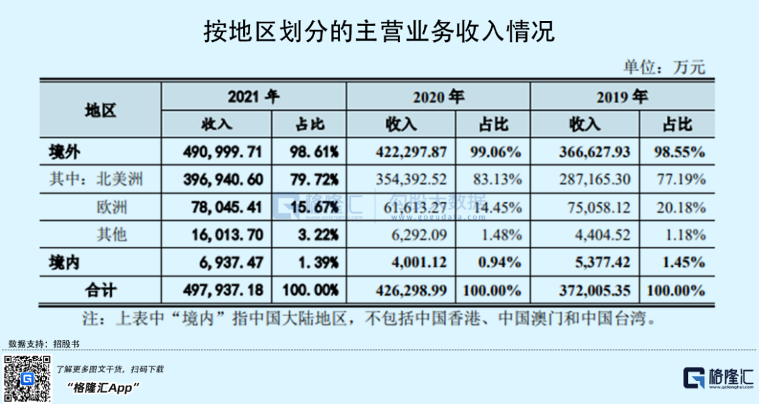 按地域划分,可以发现格力博依赖境外收入,主营业务收入中境外收入占比均超98%。这意味着,在一定程度上,其经营发展受制于宏观环境的变动。