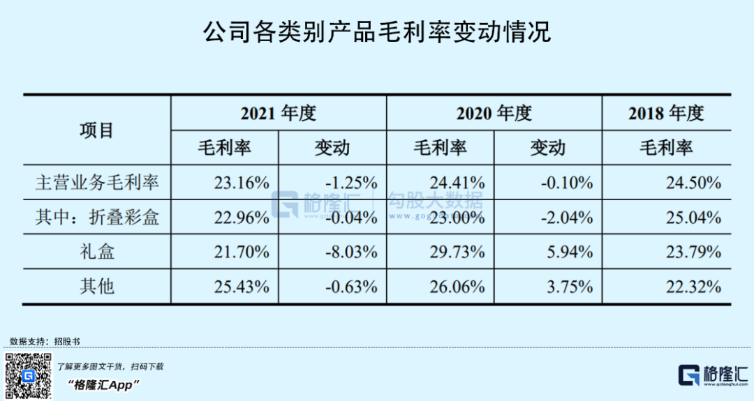 不过,自2020年7月以来上游原材料白板纸和白卡纸价格持续上涨,尽管2021年4月起价格开始有所回落,但全年平均价格仍处于较高水平,从而导致公司主营业务毛利率有所下滑,报告期内从24.5%降至23.16%。