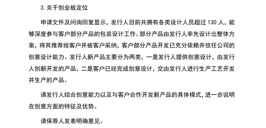 不过,中荣股份的创业板定位曾受到证监会的质疑,作为一家包装企业,与创业板“三创四新”的属性要求似乎存在一定的差距。