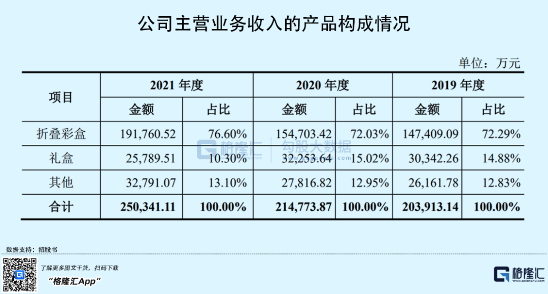 具体来看,公司的主要收入来源是折叠彩盒,报告期内该类业务收入占比均超过7成,且金额持续增长,而礼盒业务收入占比从14.88%下降至10.30%,可见公司的发展重心在折叠彩盒业务上。
