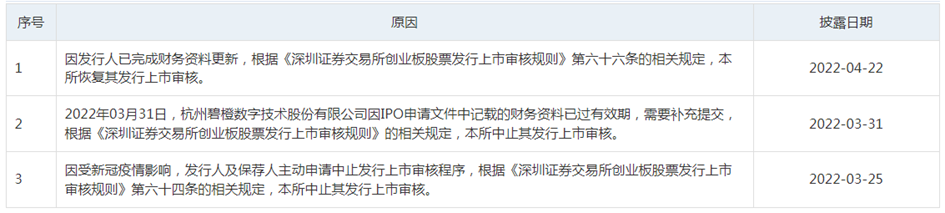 近日,因发行人已完成财务资料更新,深交所恢复了杭州碧橙数字技术股份有限公司(以下简称“碧橙数字”)发行上市审核,保荐人为海通证券。