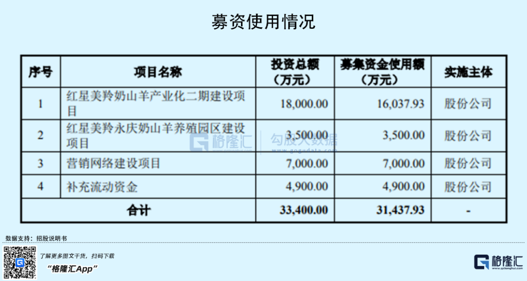 本次IPO拟募资3.14亿元,主要用于红星美羚奶山羊产业化二期建设项目、红星美羚永庆奶山羊养殖园区建设项目、营销网络建设项目以及补充流动资金。