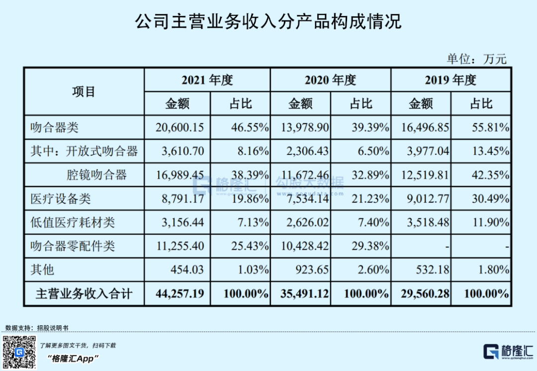 公司主要专注于以吻合器为代表的外科手术医疗器械领域,在2017年和2019年,公司分别完成对专注于吻合器及微创外科产品研发和生产的威克医疗、以及从事吻合器零部件和组件的孜航精密2家公司100%股权的收购,从而实现了从吻合器产品研发设计、模具开发、零部件生产、产品组装至下游销售的全产业链布局。