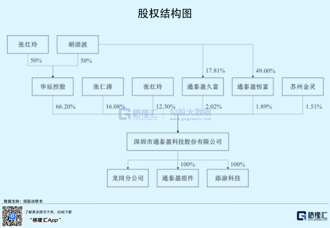 根据招股书,胡涢波和张红玲夫妇通过华辰控股控制发行人 66.20%的股份,张红玲直接持有发行人 12.30%的股份,胡涢波通过通泰盈久富控制发行人 2.02%的股份、通过通泰盈恒富控制发行人 1.89%的股份,二人合计控制发行人 82.41%的股份,为发行人的实际控制人。