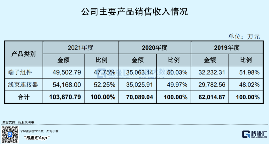 具体来看,珠城科技的主营产品分为端子组件和线束连接器,产品结构较为单一,两类产品的收入规模较为均衡,均呈现增长的态势,其中线束连接器的收入占比略有提升,期间内由48.02%上升至52.25%。