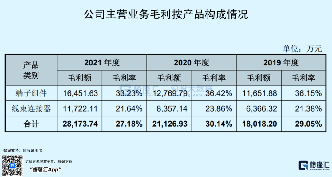 不过,端子组件的毛利贡献较大,其毛利率高于线束连接器。