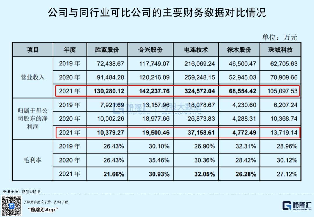 2019年至2021年各报告期,珠城科技的营收由6.27亿元增至10.51亿元,相应的归母净利润由6207.24万元增至1.37亿元,毛利率分别为28.96%、30.12%和 27.12%,公司的营收和净利润规模均呈现快速增长的态势,但毛利率波动较大。