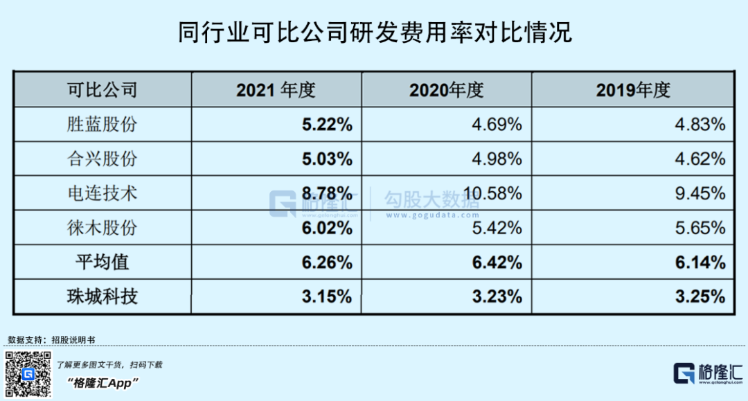 另外值得注意的是,报告期各期,公司研发费用分别为2037.88万元、2291.20万元及 3307.57万元,占比约3%。公司的研发费用虽然逐年上升,但研发费用率却远不及同行业平均水平。