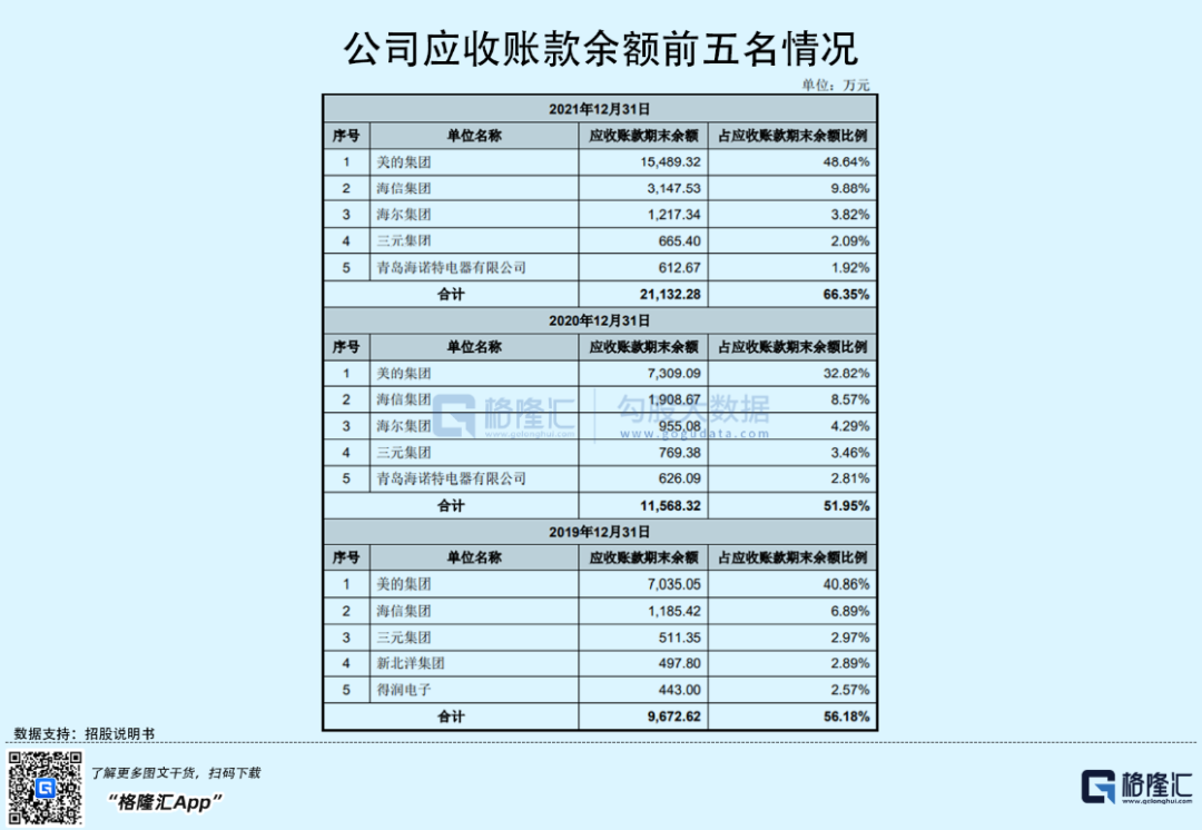 同时,由于美的、海尔、海信等客户的实力较强、信誉相对较好,因此公司给予其一定的信用期,一般采取月结30天至90天的货款结算模式,这导致公司的应收账款账面价值较高。报告期各期末,公司应收账款账面价值分别为1.63亿元、2.11亿元和3.02亿元,呈逐年增长趋势,占流动资产的比例分别为34.85%、37.05%和 39.57%,占比较高。