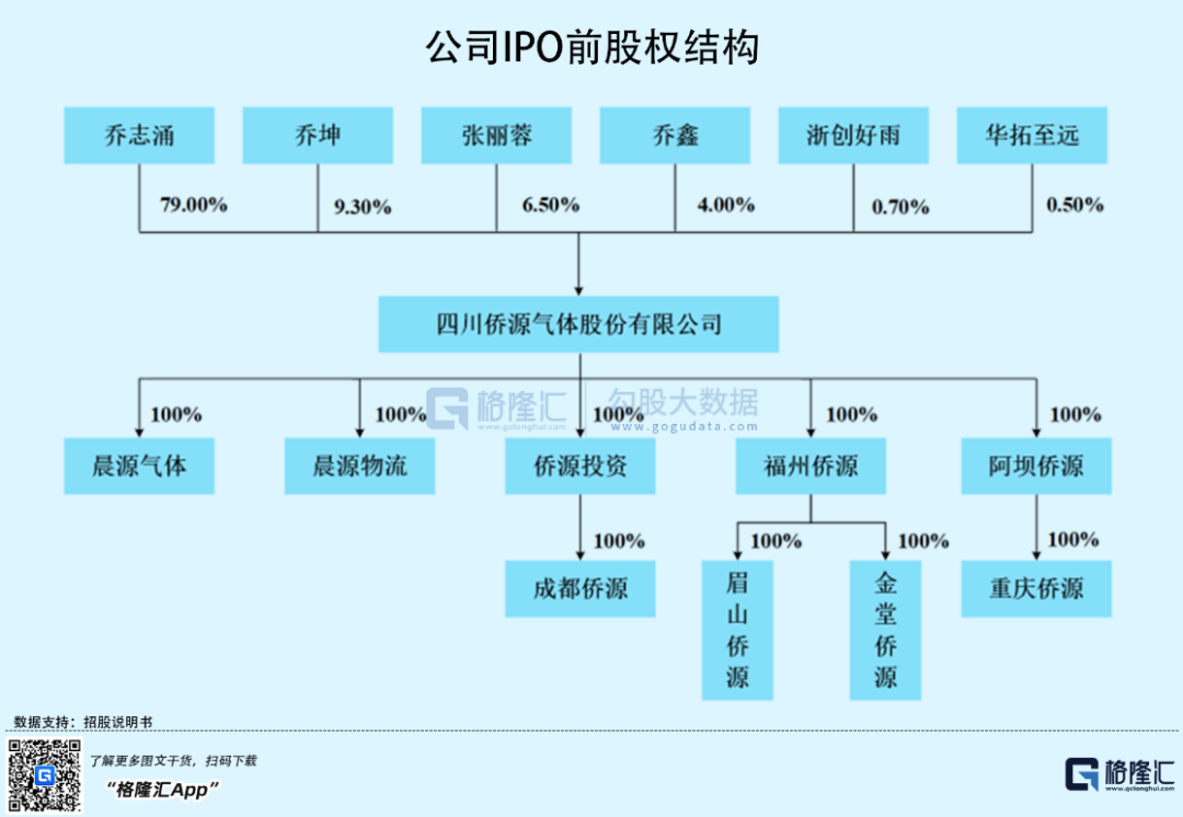侨源股份成立于2002年,由乔志涌、张丽蓉、乔坤共同出资设立。IPO前,公司的股权架构比较简单,乔志涌直接持有公司79%股权,为其控股股东、实际控制人。公司股东张丽蓉、乔坤、乔鑫分别持有公司6.5%、9.3%、4%,与乔志涌同为一致行动人。