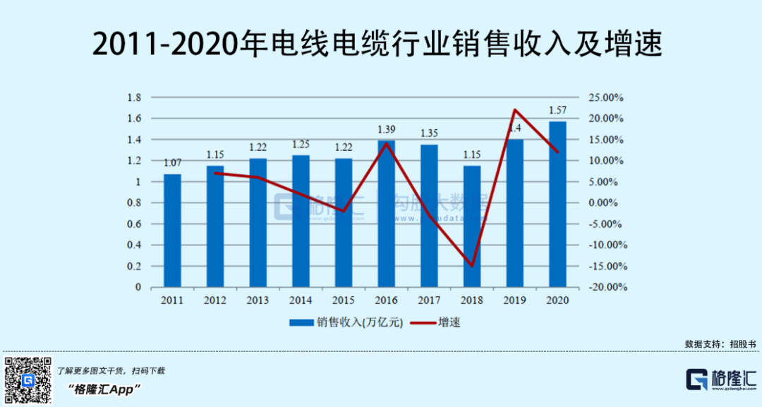 由此,国缆检测的发展空间与电线电缆行业紧密联系。当前,行业占据我国电工制造行业四分之一的产值,是机械工业中仅次于汽车行业的第二大产业,其行业规模也从2011年的1.07万亿元增长至2020年的1.57万亿元。