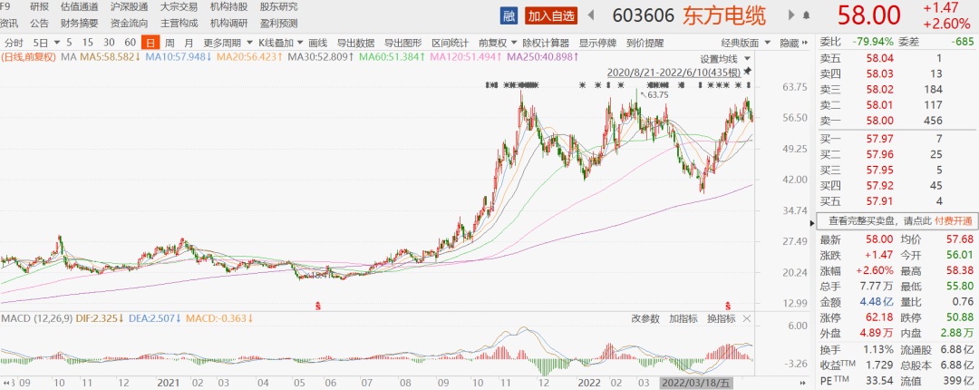东方电缆、中天科技等明星股在资本市场上表现活跃,股价不到1年涨幅超过100%,就连今年上半年市场情绪低迷的背景下,其股价位居高位震荡,更有高毅资产大佬邓晓峰在Q1新进东方电缆,为电缆赛道注入强心剂。
