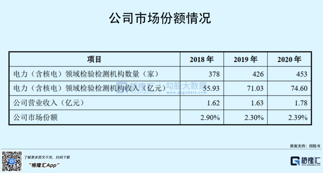 这类检验检测机构,虽在品牌认可度、资金实力、运营规模等方面相对薄弱,但也分走了市场部分的占有率。可以看到,电力(含核电)领域检验检测机构数量由2018年的378家逐年增长至453家,以收入规模计,国缆检测的市场占有率呈现波动下滑态势,由2.90%下降至2.39%。