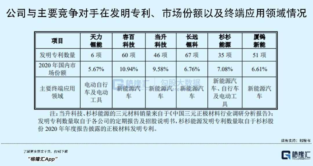 截至2022年4月12日,天力锂能已获得6项发明专利,24项实用新型专利,正在审查状态的发明专利申请7项。公司获取授权发明专利数量相对低于同行业可比公司,研发实力亟待提升。