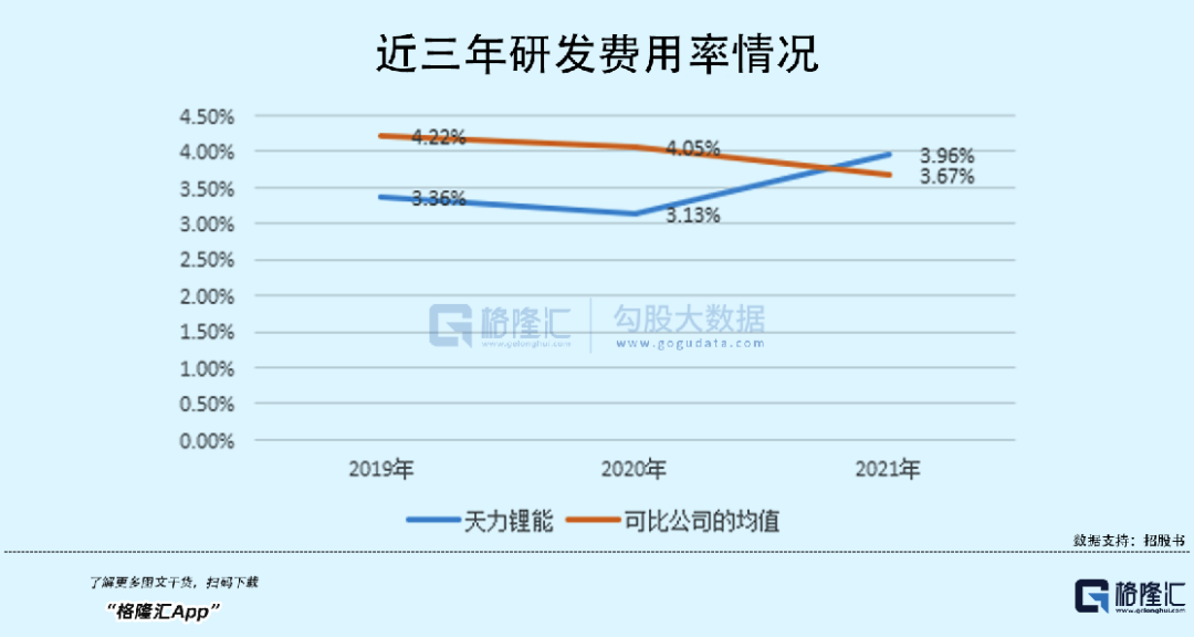 一方面,公司需要进一步加强技术竞争力。报告期内,天力锂能近三年累计研发投入达1.39亿元,研发费用率在2019年、2020年低于同行均值。