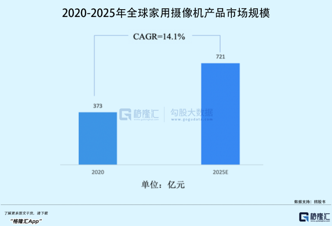 随着技术水平升级迭代,家用摄像机数字化、智能化程度不断提高,其软硬件功能和应用场景也愈加丰富。用户体验感好了,渗透率也逐渐提升,预计2020年至2025年,全球家用摄影机市场规模将由373亿元扩大至700亿元,年复合增长率为14.1%。