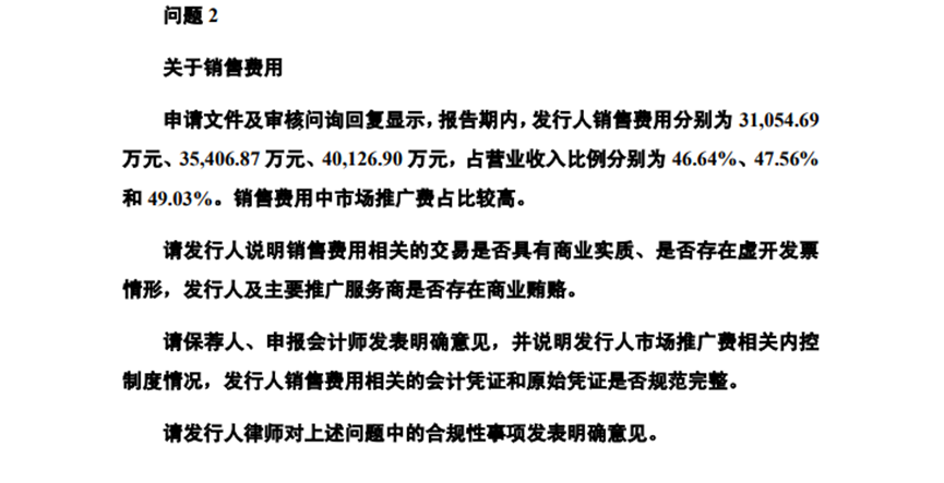 尽管公司的经营业绩保持稳步增长,但其高昂的销售费用却常遭人诟病,更有甚者表示公司的市场推广费疑似涉及商业贿赂,因此也遭到证监会的问询。