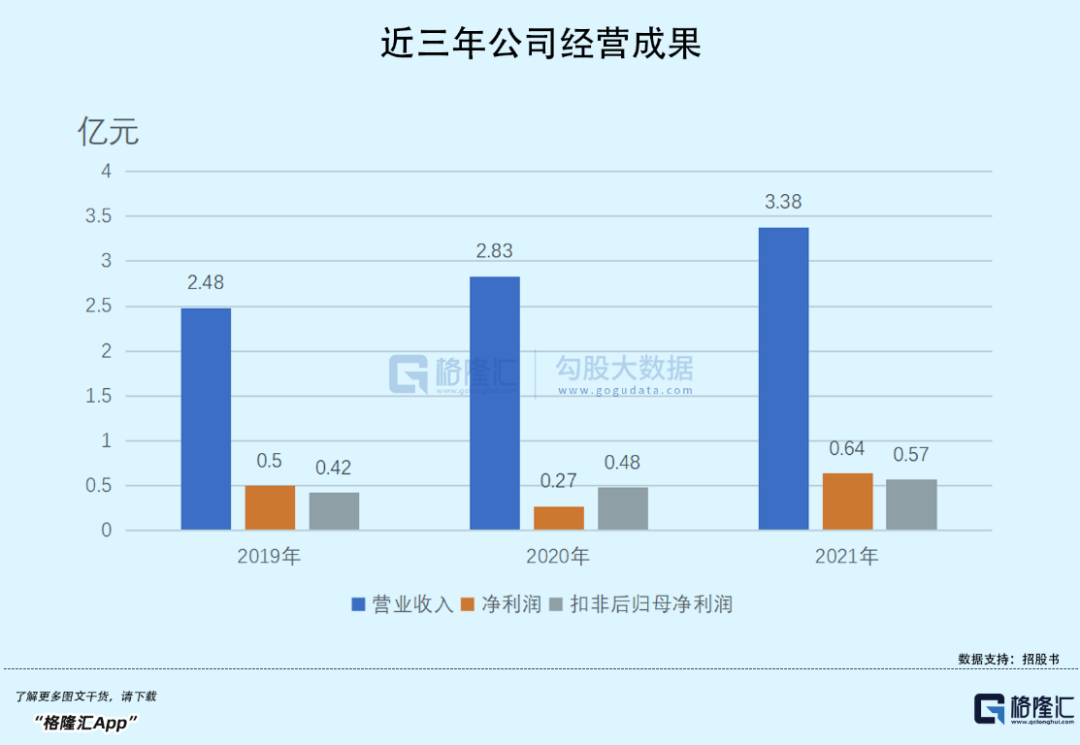 2019年-2021年,固高科技实现营收由2.48亿元增长至3.38亿元,对应的扣非后归母净利润由42333.87万元增至5741.33万元。