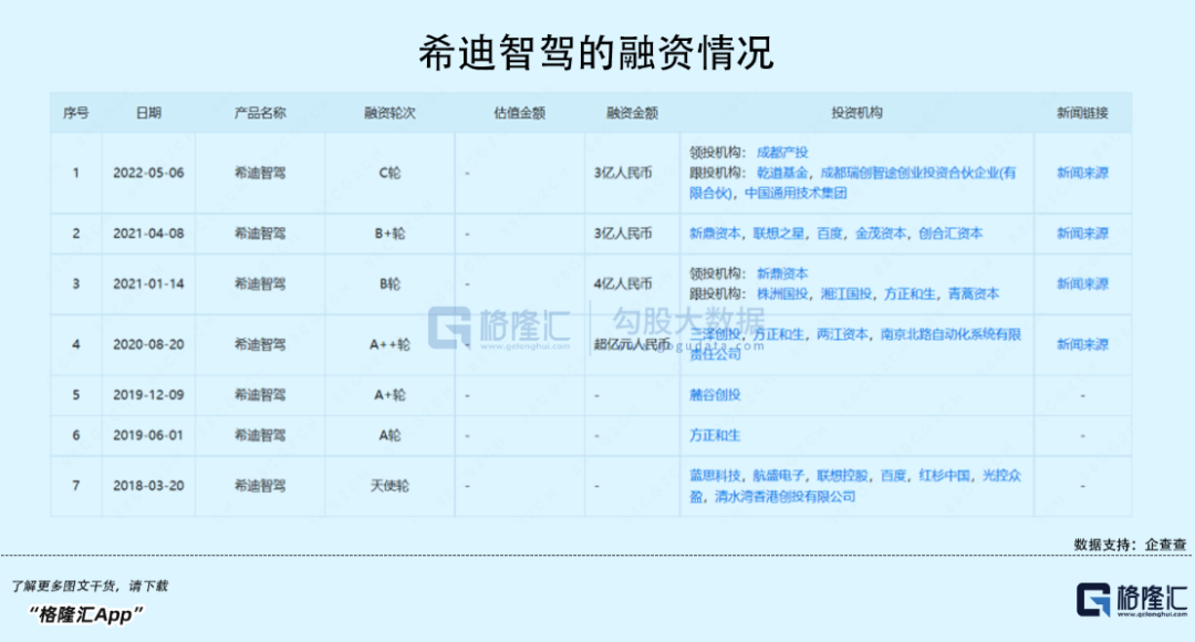 除此之外,李教授还在湖南长沙创立了一家自动驾驶独角兽——希迪智驾,其成立至今已完成7轮融资,融资额超10亿元,引进了百度、联想之星、红杉等知名资本机构。