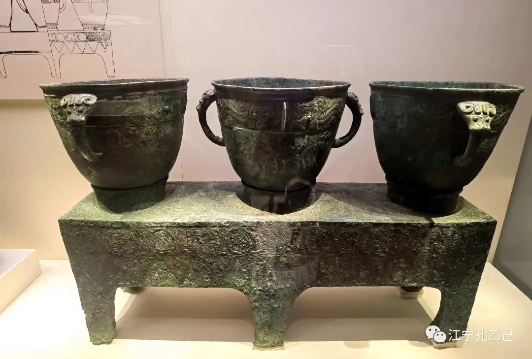 这件三联甗可是不简单啊,就是商代的一种炊具,等同于我们现代人用的蒸锅,并且还分成了上下两层,下部分能用来储水,上部的甗是用来放置食物的,原理其实是我们现代的蒸锅也差不多。