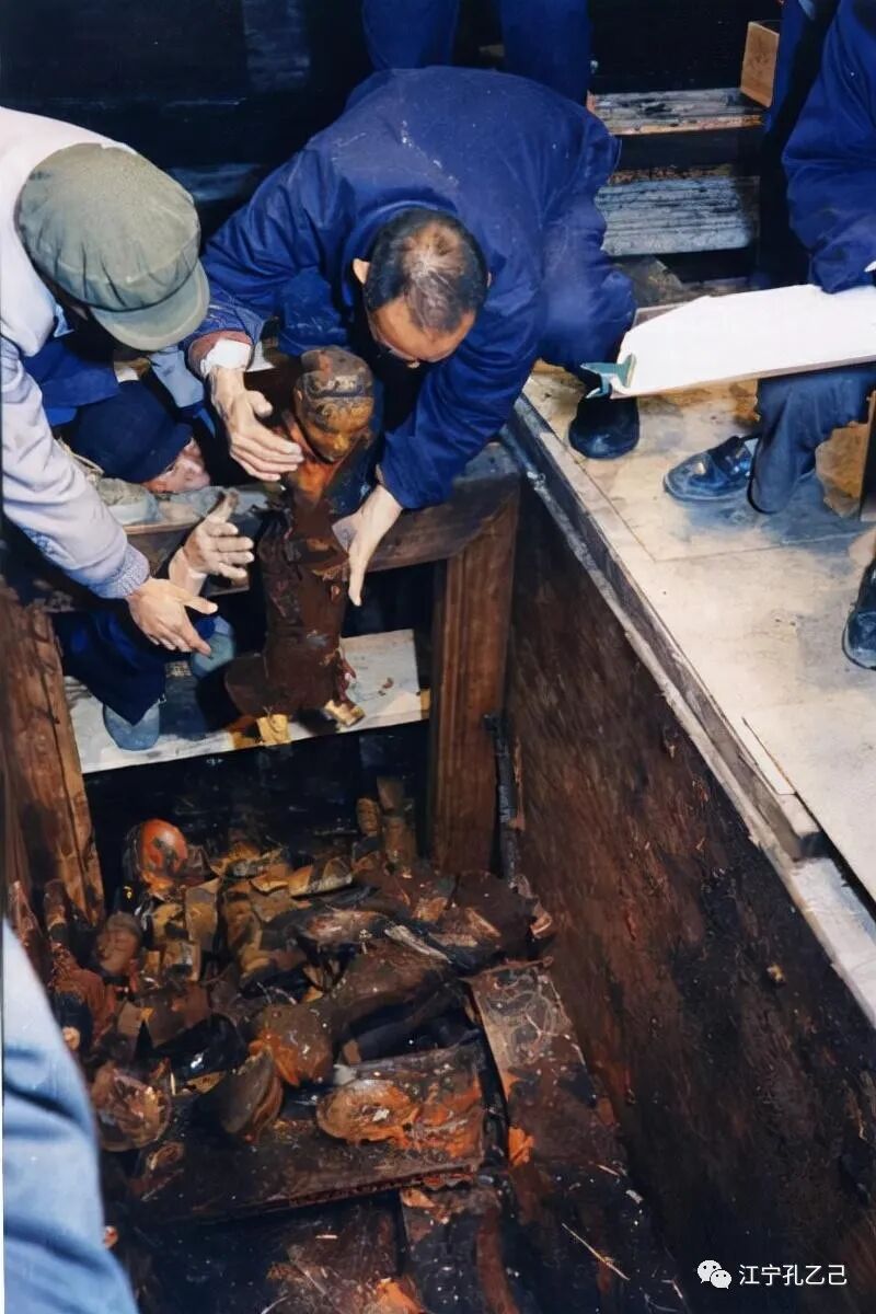 随后就相继发现了青膏泥、木炭,当时为了拉走这些木炭,考古队可是用了好几辆卡车来回的搬运,估计起码不下于5000公斤。