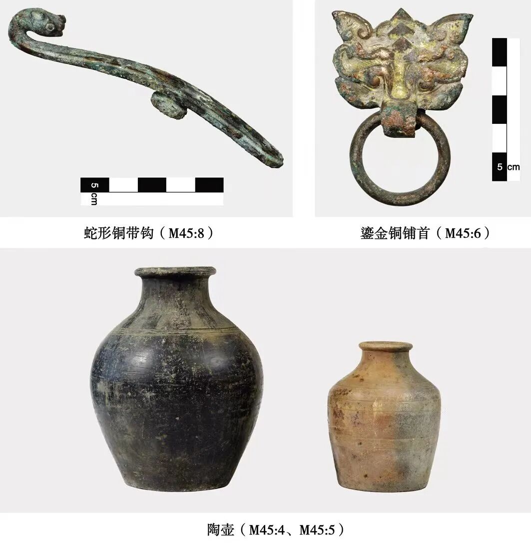 该墓地最具特征的是“凸”字形封堆带有斜坡墓道的竖洞室墓和竖穴土坑竖洞室、横洞室墓。这类葬俗在墓葬地表形制及丧葬习俗上与蒙古高原发现的匈奴墓葬有一定的相似性,但其竖洞室和横洞室的墓室结构,又与内蒙古乌兰察布七郎山发现的北魏时期鲜卑墓[5]非常一致。随葬遗物中也兼有匈奴和鲜卑文化特征,并有一定程度的汉文化因素,圆环形石封堆竖穴土坑墓从形制到丧葬习俗都与漠北发现的匈奴平民墓接近。[6]碳十四测年结果显示,这批墓葬年代范围在公元前50年至公元150年之间。[7]根据墓葬的地理位置、文化特征、出土遗物和测年的情况,这一族群应与史书“匈奴余种留者尚有十余万落,皆自号鲜卑”[8]的记载相吻合,而且其可能是内蒙古七郎山鲜卑人群的前身。